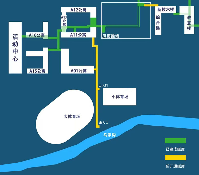 一校区A11公寓至体育场段暖廊目前已具备通行条件,将于2025年12月6日(星期六)早8:00开放通行(后附线路图)。