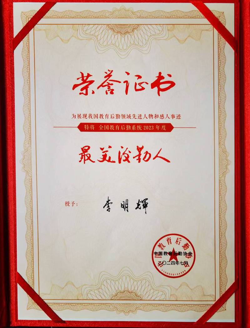 近日,全国教育后勤系统2023年度“最美后勤人”荣誉授予仪式暨最美事迹报告会在长春市举行。我校总务处/后勤集团李明辉榜上有名。